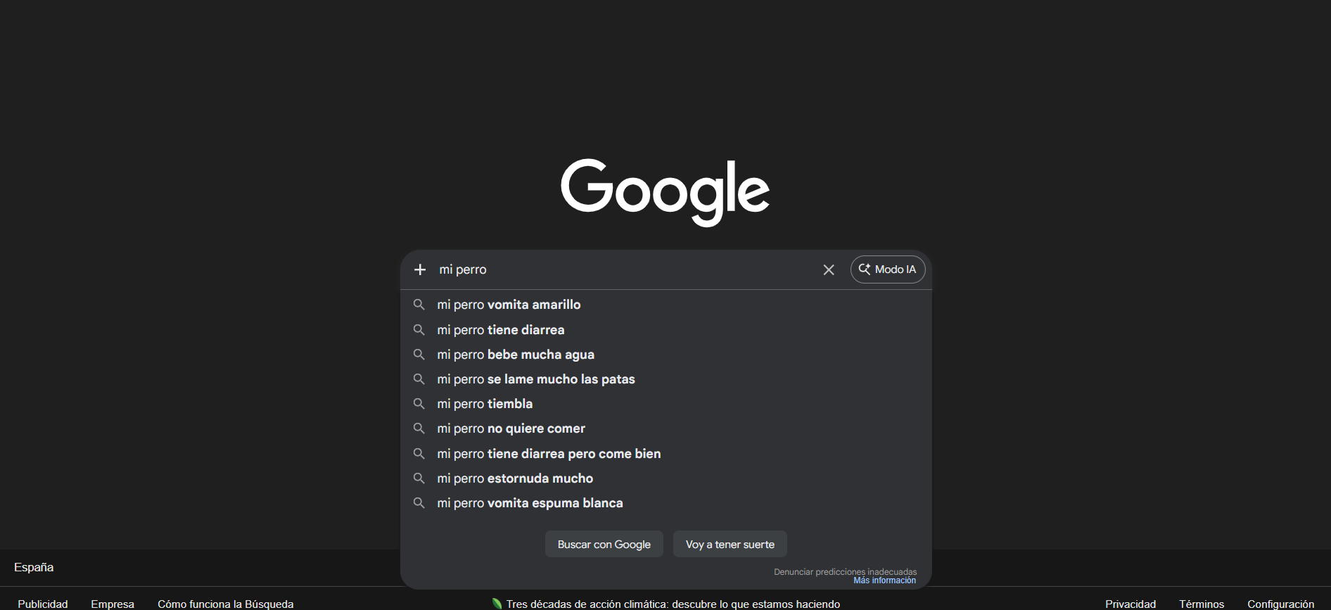 Por ejemplo, si escribes “mi perro…” en el buscador, verás sugerencias como: